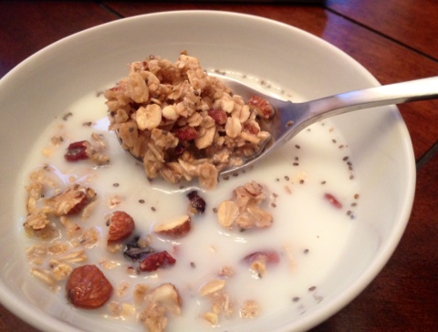 Make sure to store your granola in an air-tight container and it should last you quite a while. Also, as you can probably detect from the bottom picture, the Chia seeds were an experiment. I didn’t know if it would work well but I knew it was a good thing to add to food. I just need to get used to its texture once it’s soaked with milk.