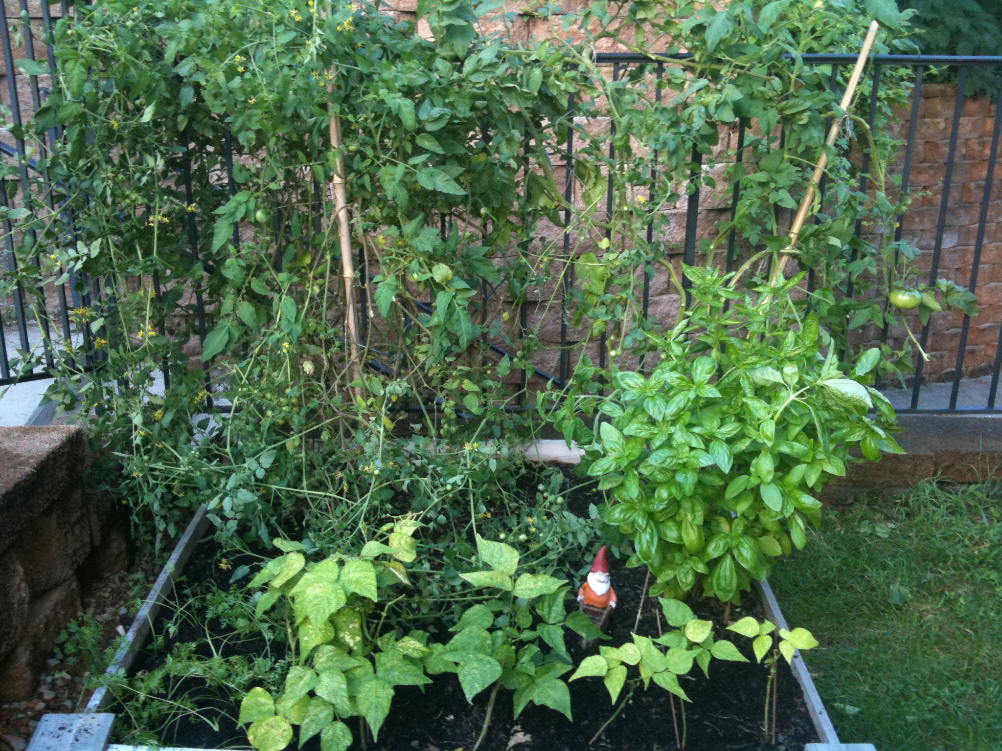 Our other issue ended up being the tomato plants. They really grew out of control. The big tomato and the cherry tomato plants got all tangled and it was just a big mess. The tomatoes also kept falling in the stairs behind the railing. We share these stairs with our neighbors so I felt bad that they had to walk through rotten tomatoes if I didn’t get a chance to go clean them up.