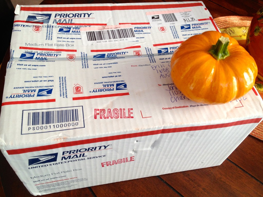 When I got back home, I stopped by the mailbox and you can’t imagine my surprise when I saw my September foodie package in there! I had received an email for Erin (my foodie match) at the beginning of the week saying she just mailed it so I really didn’t expect to receive it until next week. I couldn’t enter the door fast enough to tear it open! Of course, I have to follow the rules and I can’t mention what is in the package until October 1st. But let me just say it now, it rocks! So here’s a little picture of the two things that made my day today: