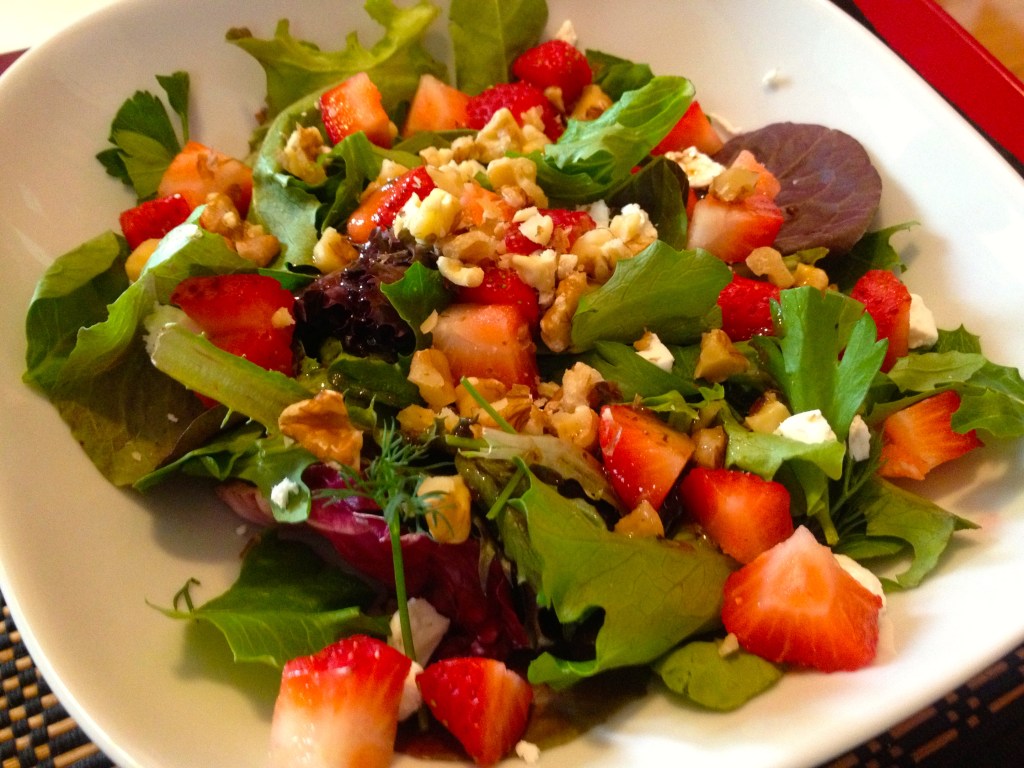 Salads are another thing that I tend to forget how much I love. I can eat salad every lunchtime for over a week and I won’t get tired of it. If I don’t eat it for a while though, it just goes way down on my list of meal options. But as soon as I have it again, I remember how much I enjoy it! Go figure. This week, my salads have been a mixture of spring mix, spinach, strawberries, goat cheese, walnuts and Newman’s Own balsamic vinaigrette dressing. It’s been so simple and so quick to make. I love to try out new dressing all the time and I have to say that I really like this balsamic one.