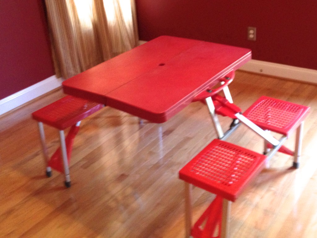 Exhibit B: The fun but uncomfortable picnic table. Any furniture that can fold into a suitcase size can’t be that great for daily use.