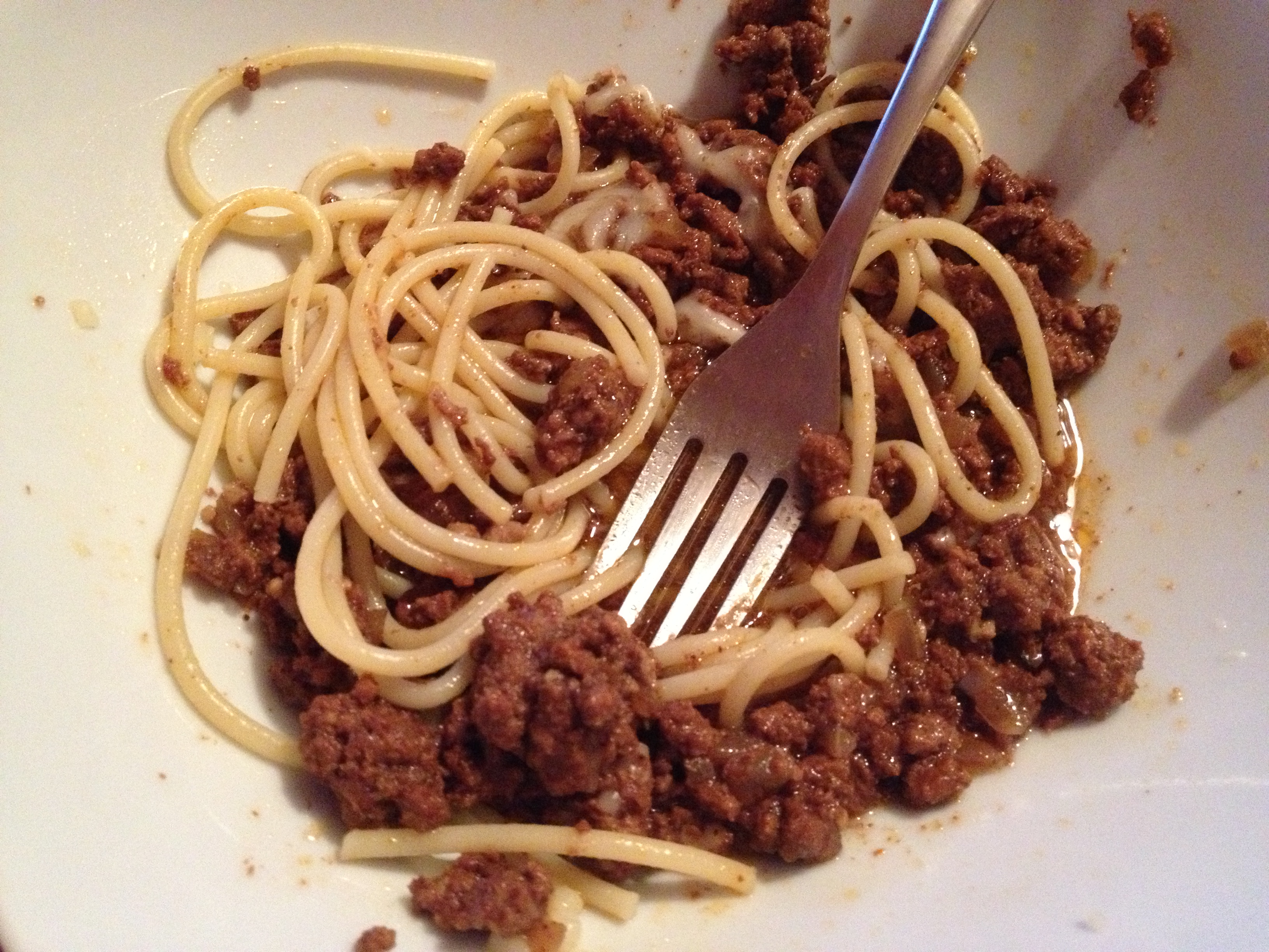 All in all, this turned out to be a super easy dinner. For the chili and bread, I only had to throw stuff in a machine (slow cooker and bread machine, respectively) and threw some pasta to boil right before serving. And the result was perfect.