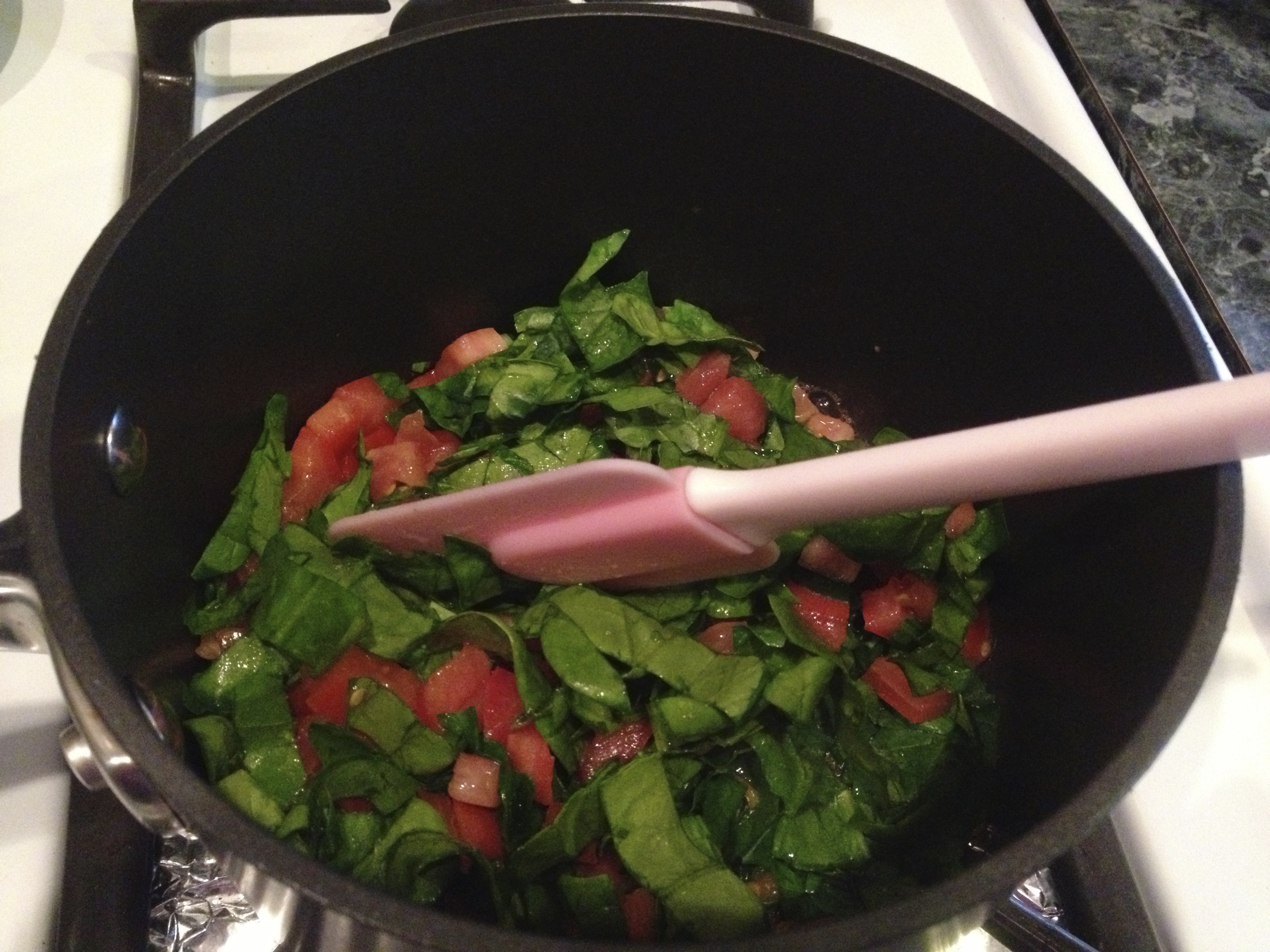 The sauce was a simple mixture of whatever I found in the fridge: spinach (chopped), cherry tomatoes (halved), garlic (finely chopped), marinara sauce, and fat-free ricotta cheese (ricotta cheese isn’t really Paleo but I had it and only put a little bit anyway). I cooked the spaghetti squash, halved, in the microwave oven. This simple recipe was not only super satisfying but it reminded me that spaghetti squash is a fine replacement for pasta. Not only does it contain a lot of fiber, but it has vitamins A and C as well.
