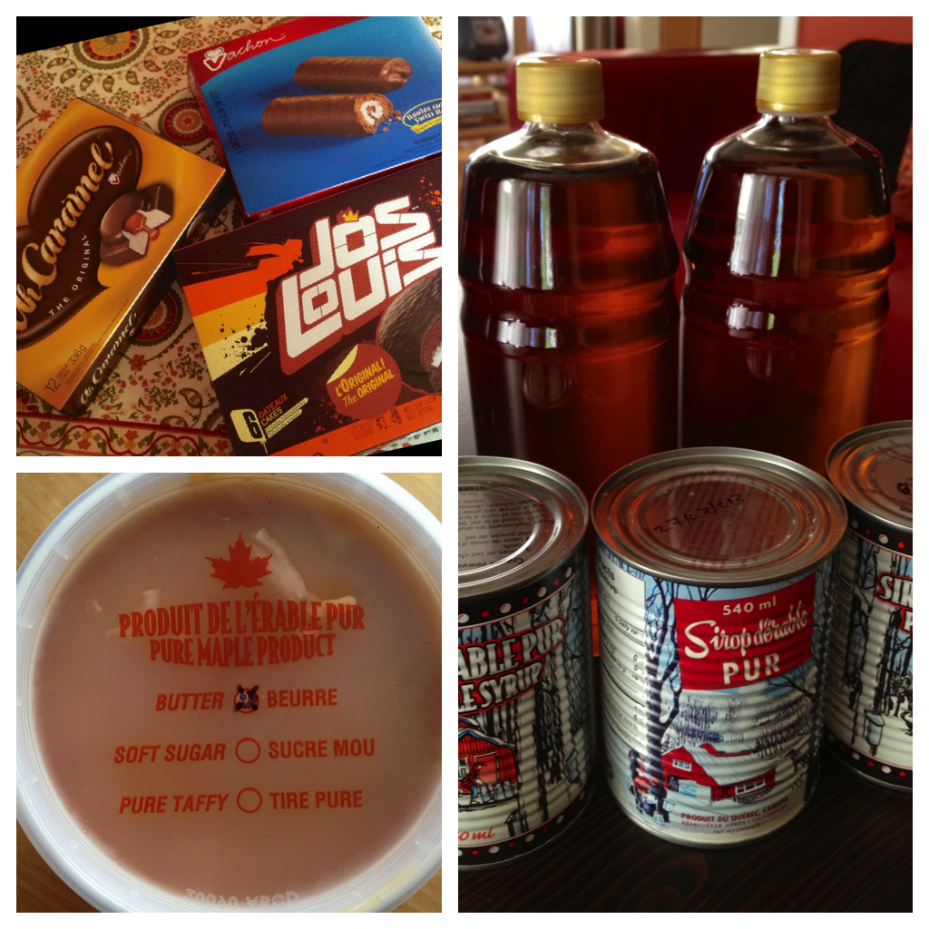 The other perk of having my parents visit (other than their wonderful company) is the stuff they bring me. And by stuff, I mostly mean food. This time, they brought me some of my favorite desserts, Vachon cakes (Ah Caramel, Jos Louis & Roulés Suisses). We used to eat these for desserts every night when I was growing up. Although I try to avoid daily dessert now, I still love to eat my little cakes whenever they’re available. So much better (in my opinion) then anything similar in the U.S.! I also got my yearly dose of maple products: 3 cans of maple syrup, plus 2 extra bottles (made by a family friend) AND maple butter! Oh, the sugar high I will be on for the upcoming months! 🙂