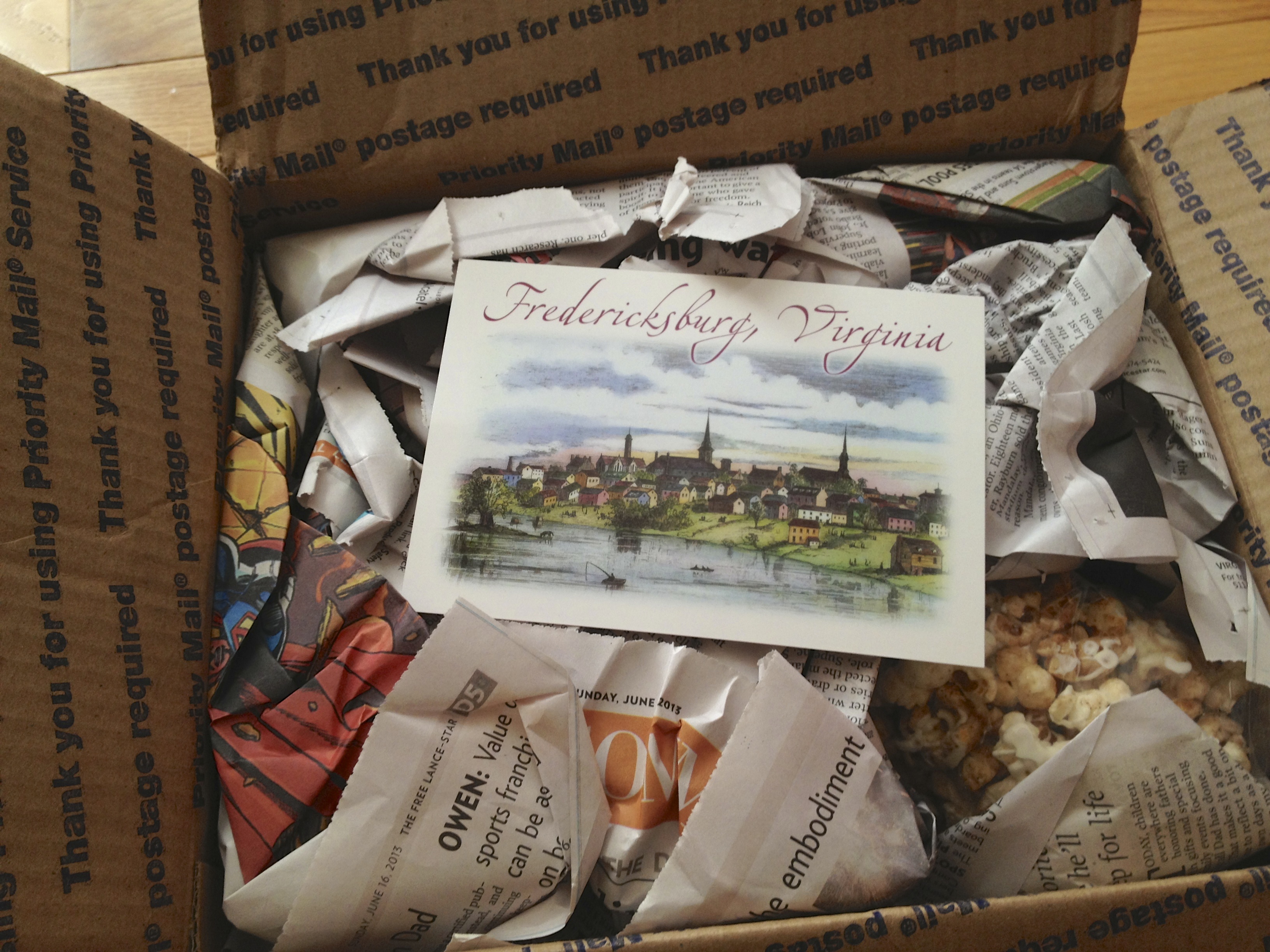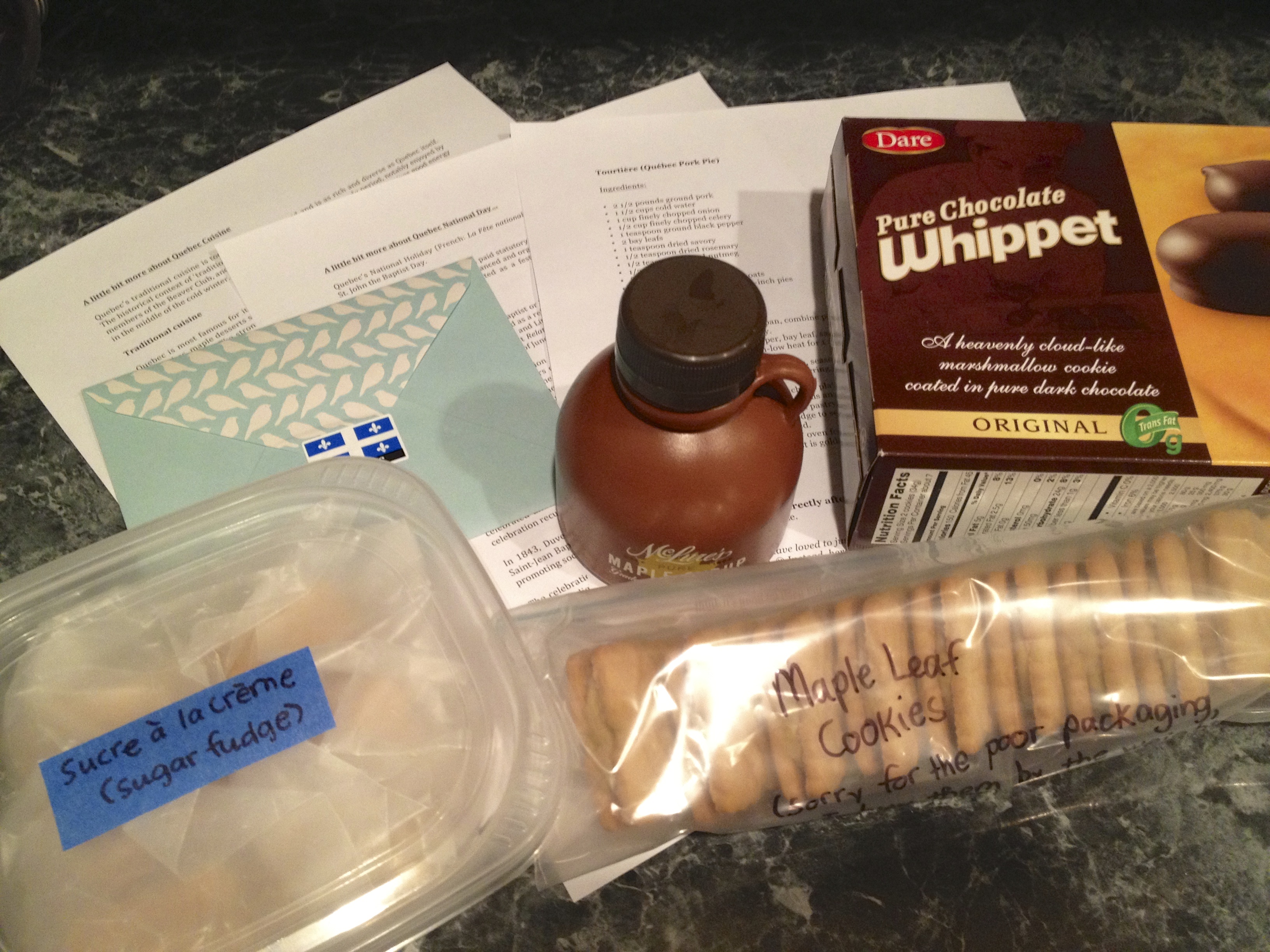 This month was especially interesting as both of my matches were pretty familiar with Virginia. I sent my package to Sherri who lives in North Carolina. As she used to live in Virginia, I decided to do something different this month. Instead of sending her a local package as I often do, I decided to make her a Quebec package as a way to celebrate the upcoming (although now passed) Quebec National Day. As Sherri doesn’t have a blog, here’s what I sent her…