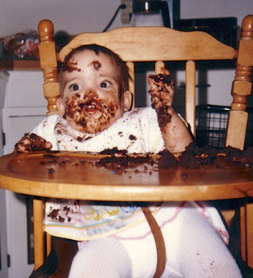 - On my first birthday, everyone expected me to destroy the cake. I apparently was too clean so my godfather and my grandpa decided to smear the cake all over my head to get the typical first birthday messy photo.