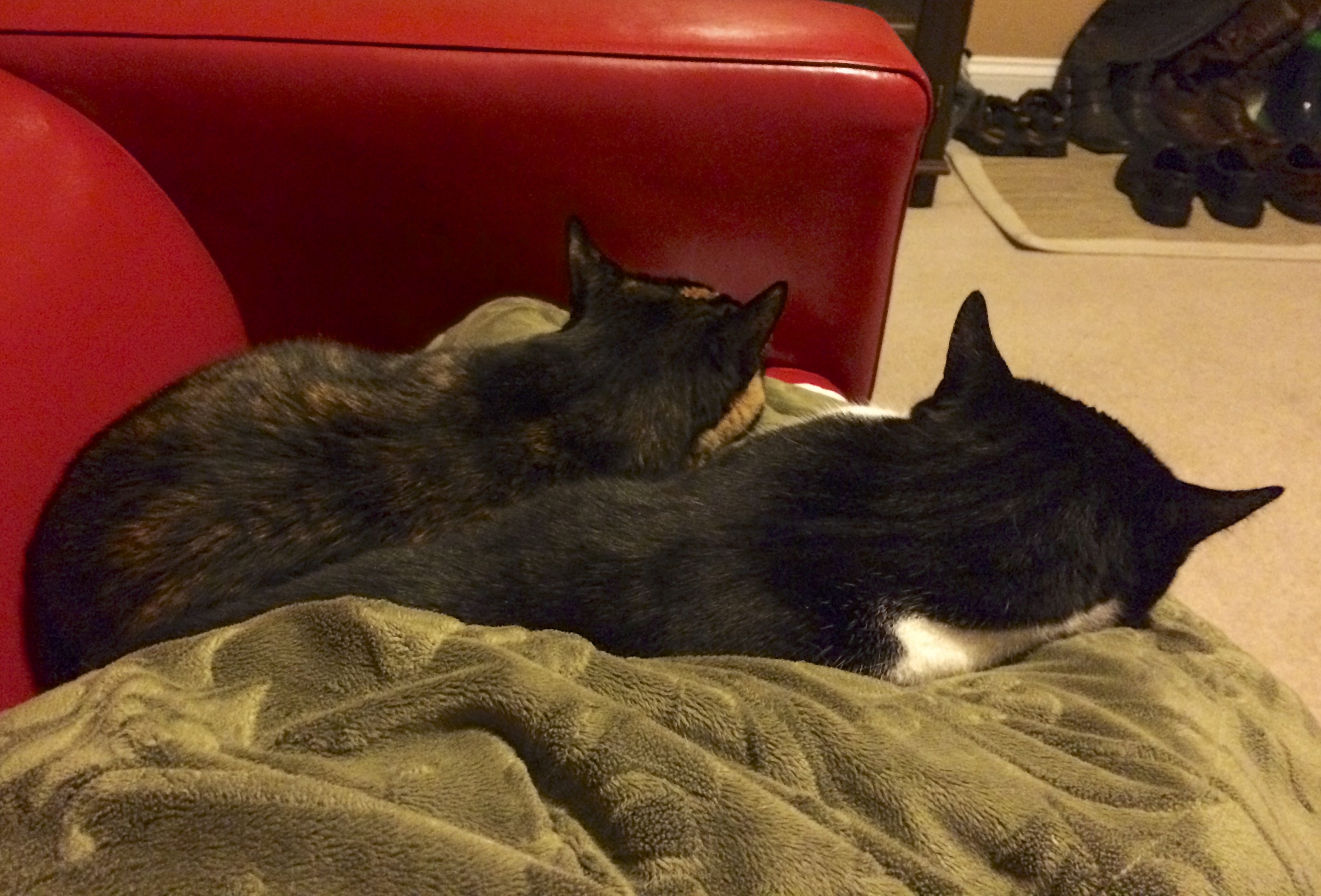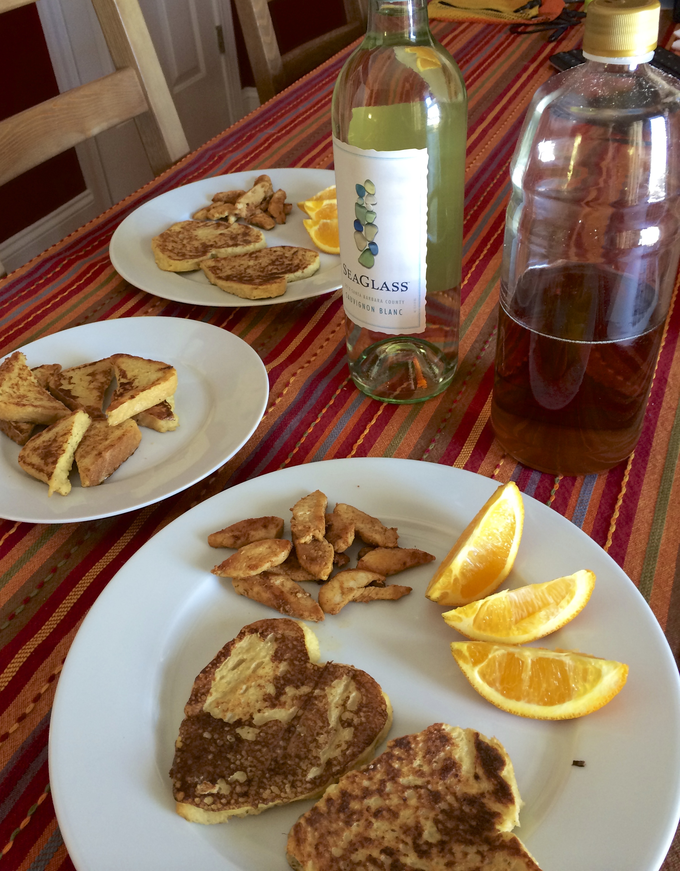 Friday was Valentine’s Day, of course! Normally, I make a big deal about it…never in a demanding way but more by wanting to make heart-shaped treats and share a good meal together. After Wednesday’s big scare, we were both exhausted and didn’t really have access to much since most roads had not been plowed yet. So we improvised with what we had for the perfect Valentine brunch: heart-shaped French toast, sautéed chicken and oranges. And a metric ton of maple syrup. And maybe a little wine since we couldn’t go anywhere anyway.
