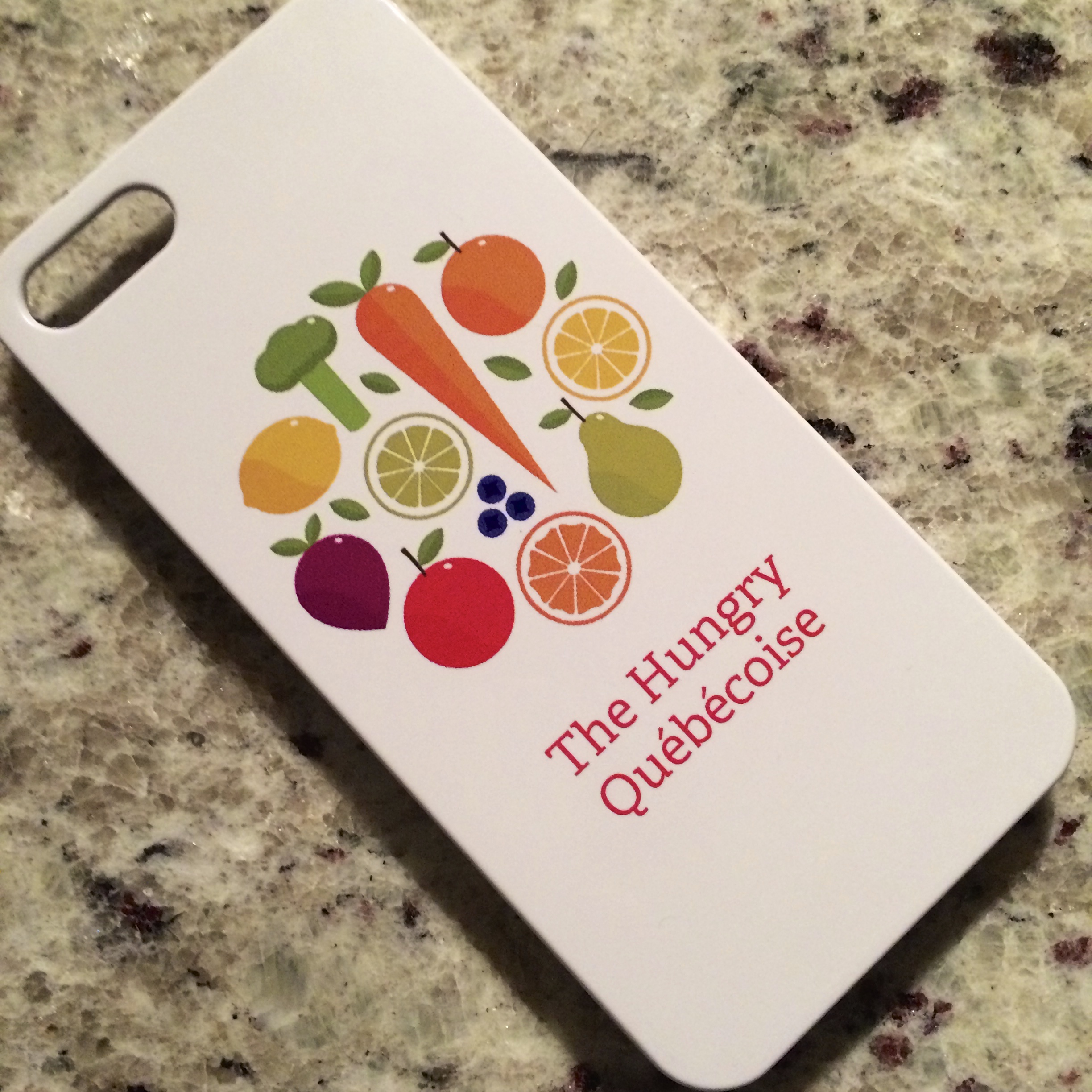 A few weeks ago, I went to Vistaprint to order new mailing address stickers. I stumbled upon iPhone cases and saw a fruit and vegetable logo. I simply couldn’t help myself and made the very first “Hungry Québécoise” iPhone case! I just received it yesterday and I absolutely love it!!