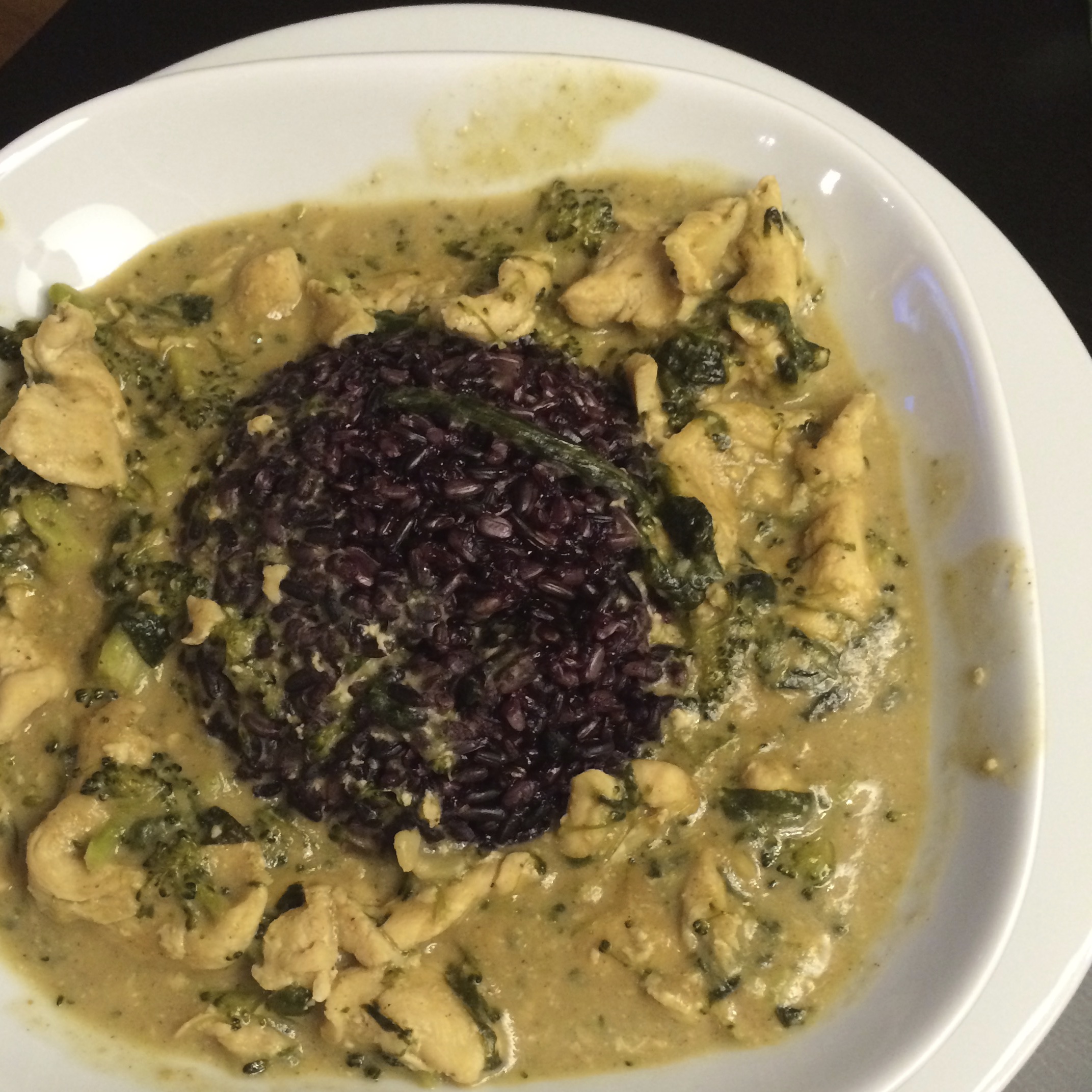 Jeff made his famous curry (a recipe I should certainly share soon!) with a few tweaks: chicken, broccoli and spinach curry with a blend of brown and wild rice. It looked pretty different because he used green curry paste and the different rice but the taste was just as wonderful as I remembered it.