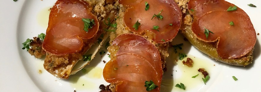 A couple of things were off with my version of the recipe: my husband asked if I could use his vanilla-flavored almond milk instead of heavy cream for the “stuffing”, and the Serrano ham I bought wasn’t as wide and thin as I am used to (and what I think the recipe called for).
