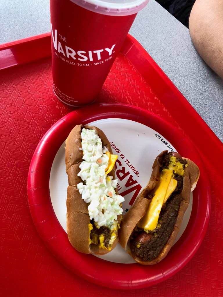 - As we returned home, I had a few places I wanted to check off my Atlanta bucket list. Thankfully, my adventure buddy Anays agreed to go to The Varsity with me to try ALL THE FOOD! We tried the chili cheese dog, chili cheeseburger, chili cheese slaw dog, onion rings, fried peach pie, frosted orange and peach iced tea…and somehow didn’t die.
