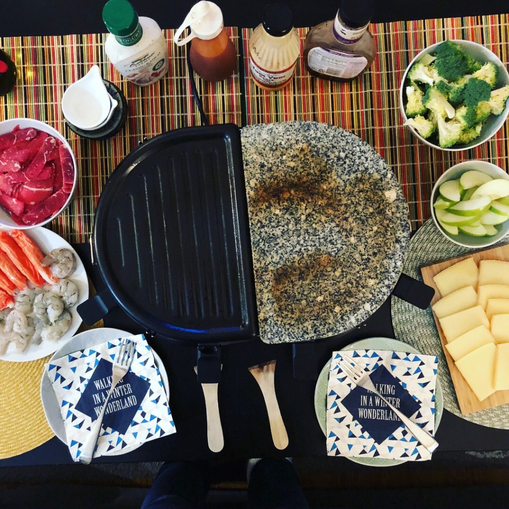 - A kind friend of mine let us borrow her raclette grill and made us realize this was the perfect fun meal, especially considering all of Jeff’s food restrictions. Cheese and meat galore.
