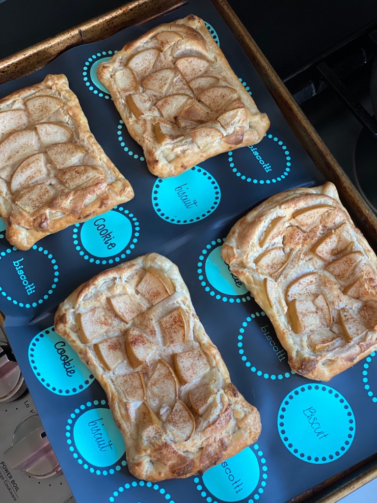 As you can see on the picture above, I was not going for perfection here. None of the rectangles are the same. I didn’t put an egg wash on the crust. But trust me when I say it was all so delicious, I quickly forgot how they looked like!